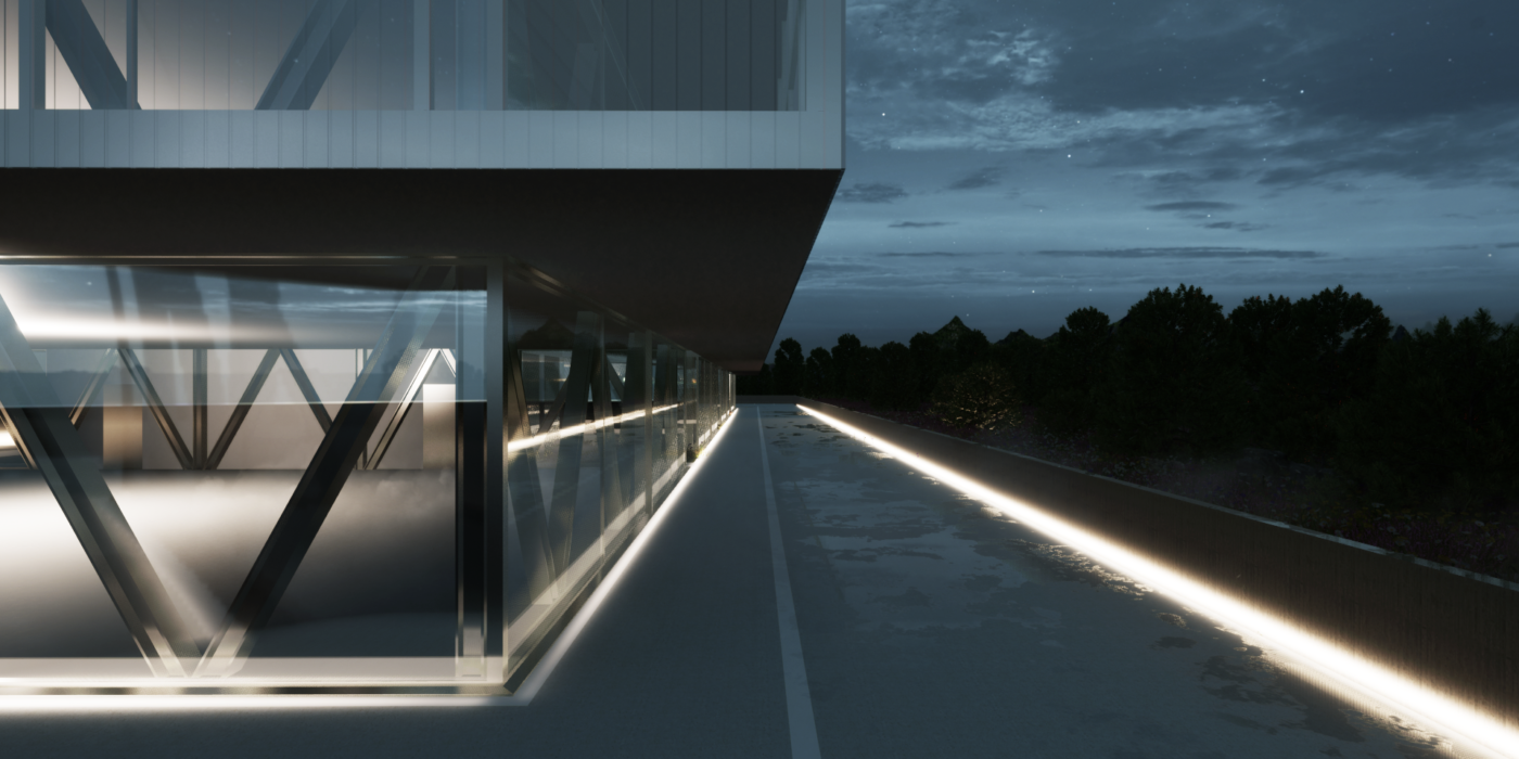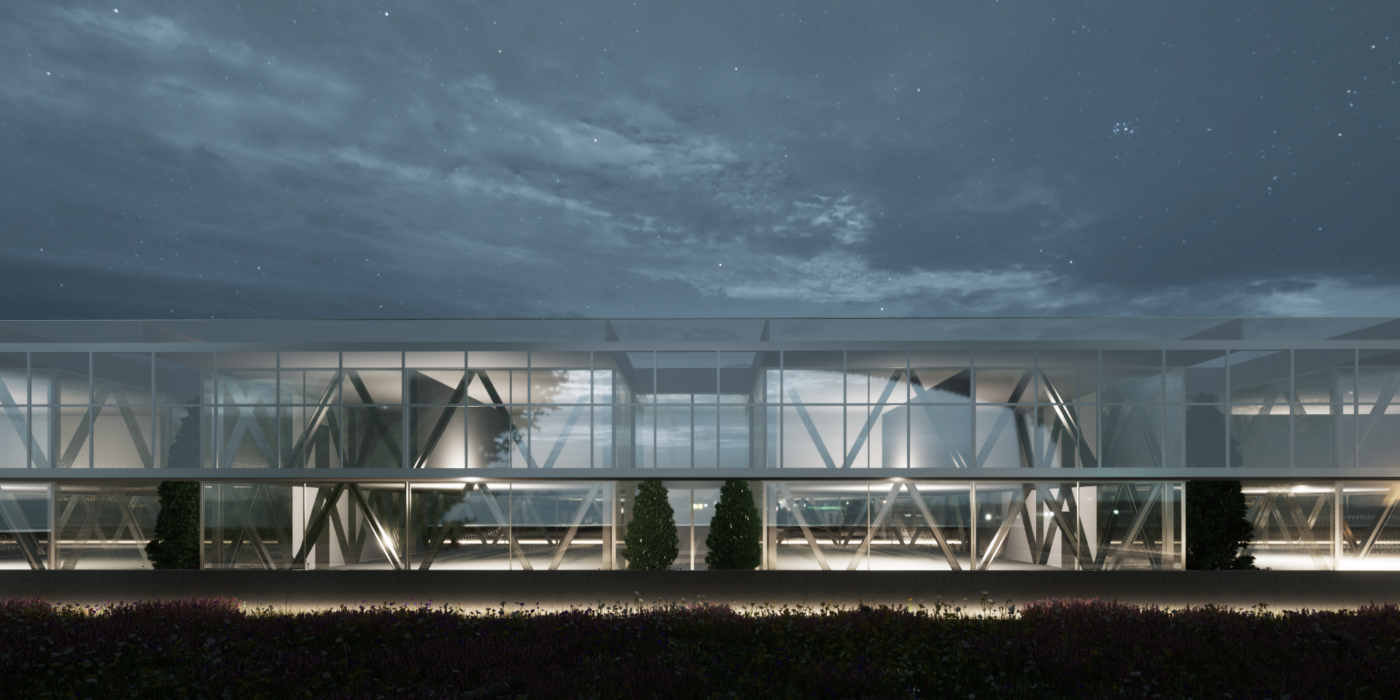 Nascido numa fusão de programa industrial e comercial carateriza-se pelo seu principal foco – máxima multifuncionalidade e máxima adaptabilidade. A sua volumetria “quatripartida” é constituída, no piso rés-do-chão, por quatro espaços abertos, envidraçados, com total amplitude visual entre os mesmos e seu exterior, separados somente pelos respetivos pátios de acesso entre volumes. Esse ponto de convergência são um foco dos acessos, luz e de natureza que enuncia o piso superior.